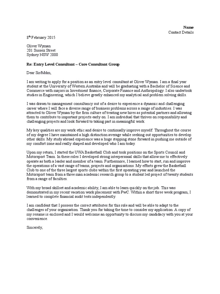 Avoid using a template. Your cover letter complements. Consulting cover letters are very different from traditional cover.